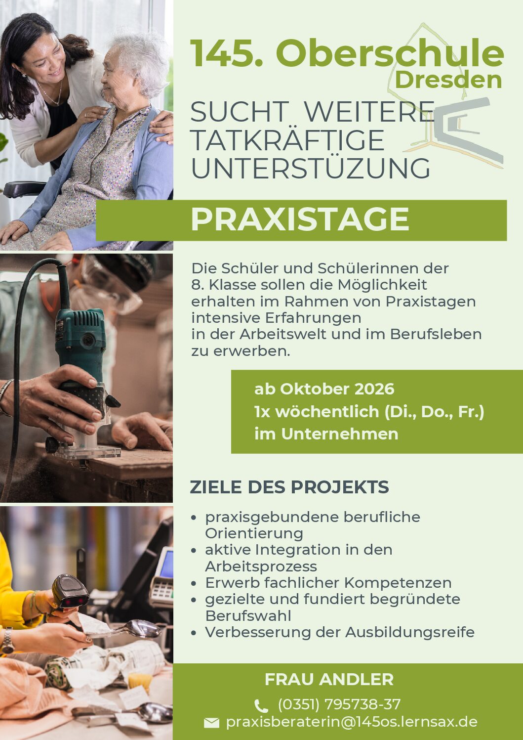 Wir sind dabei vom 9. bis 13. März 2026. Bei der Woche der offenen Unternehmen in Sachsen. Unsere Schülerinnen und Schüler der Klassen 7-10 Gelegenheit, in dieser Woche verschiedene Berufe kennenzulernen. Dies wird möglich, weil sich einerseits immer wieder Unternehmen finden, die Nachwuchs suchen und weil wir eine hervorragende Praxisberatung und Berufsorientierung an unserer Schule haben. Unseren Jugendlichen gutes Gelingen in der neuen Woche in der Berufspraxis.